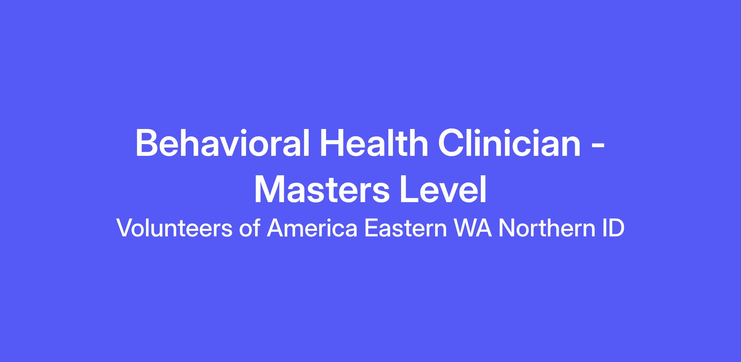 Volunteers of America Eastern Washington & Northern Idaho is growing—and we’re looking for clinicians early in their careers who want more than a traditional office-based role