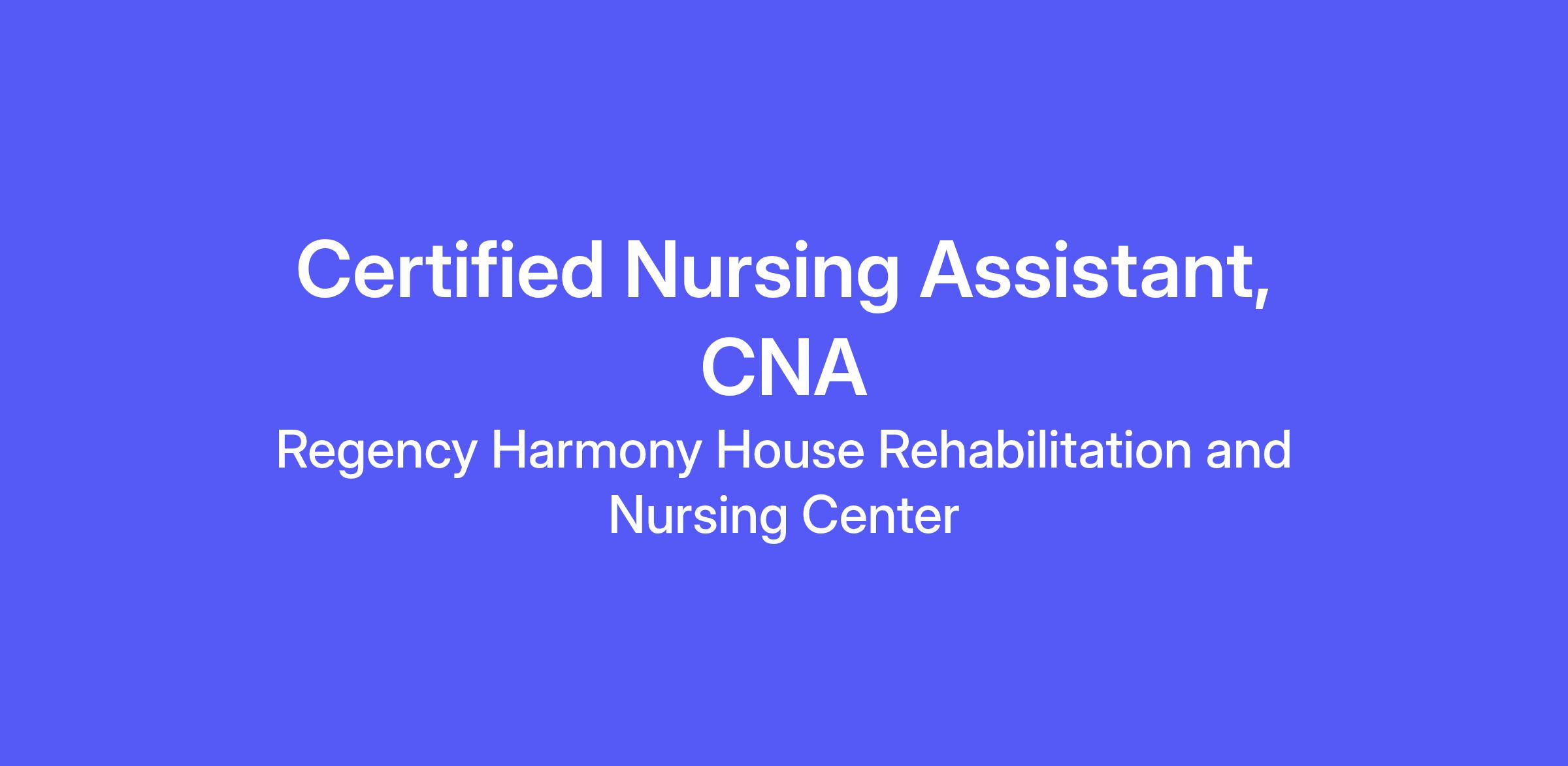 Certified Nursing Assistant, CNA