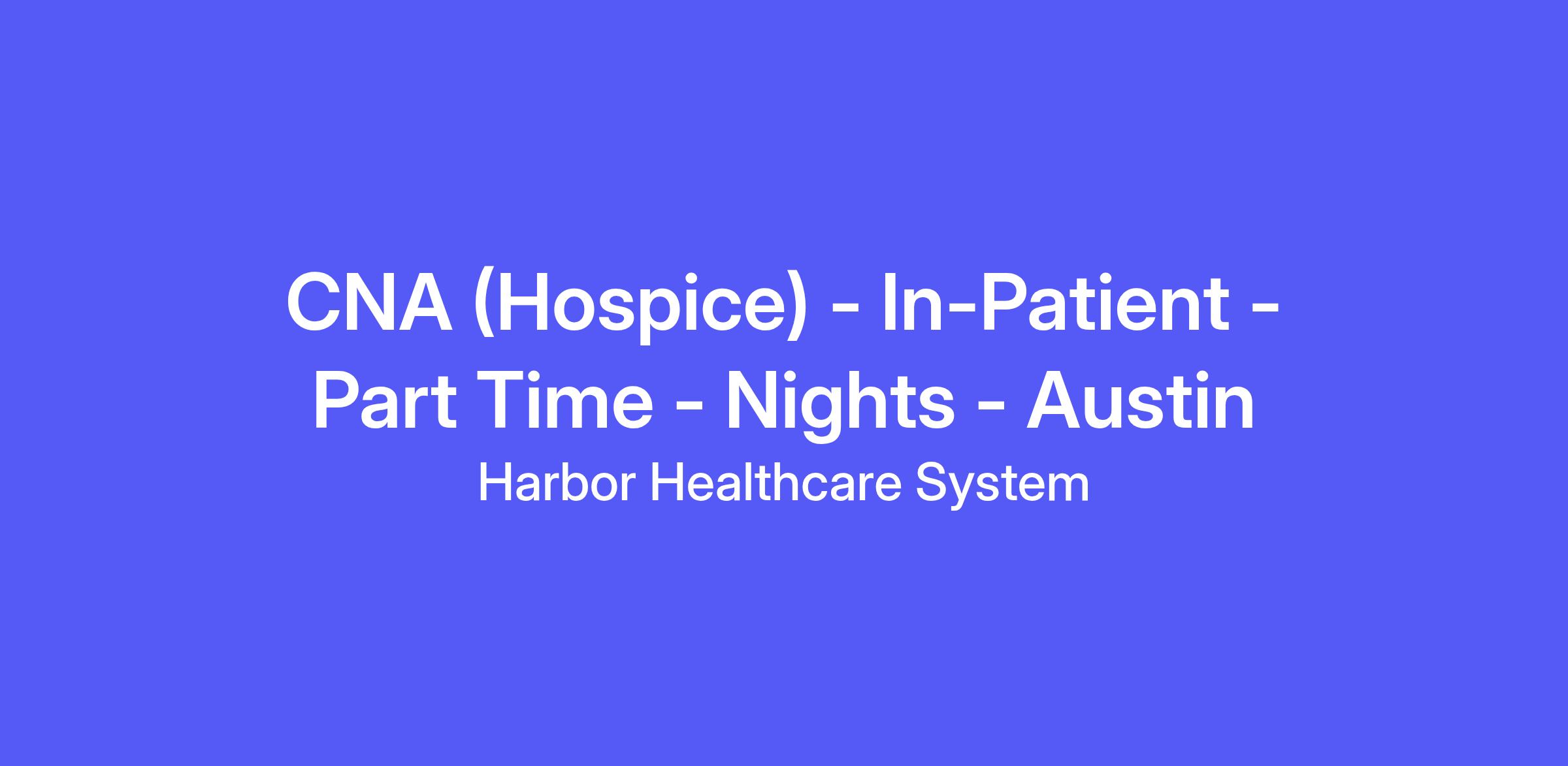 CNA (Hospice) - In-Patient - Part Time - Nights - Austin