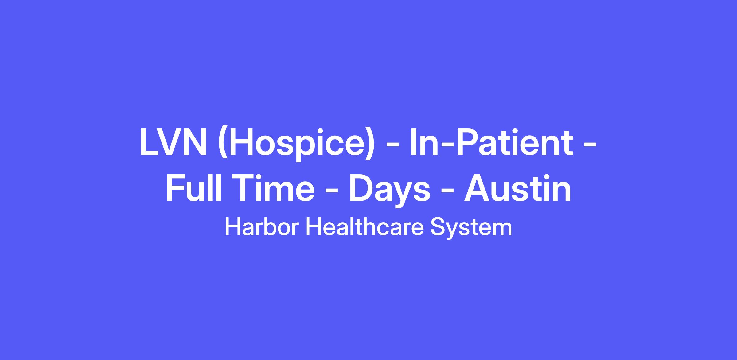 LVN (Hospice) - In-Patient - Full Time - Days - Austin