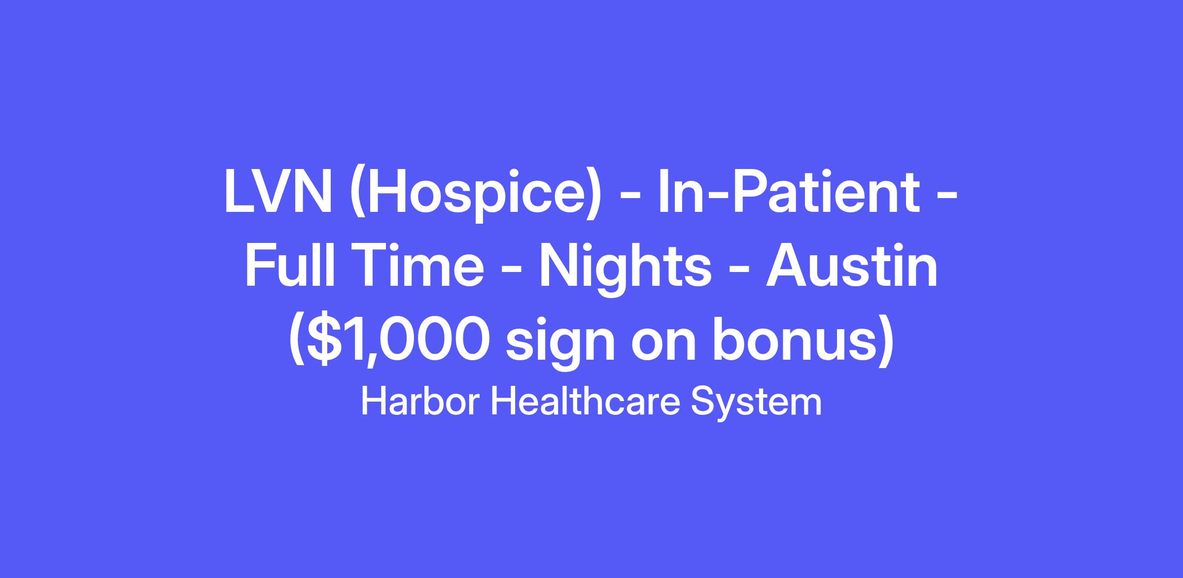 LVN (Hospice) - In-Patient - Full Time - Nights - Austin ($1,000 sign on bonus)