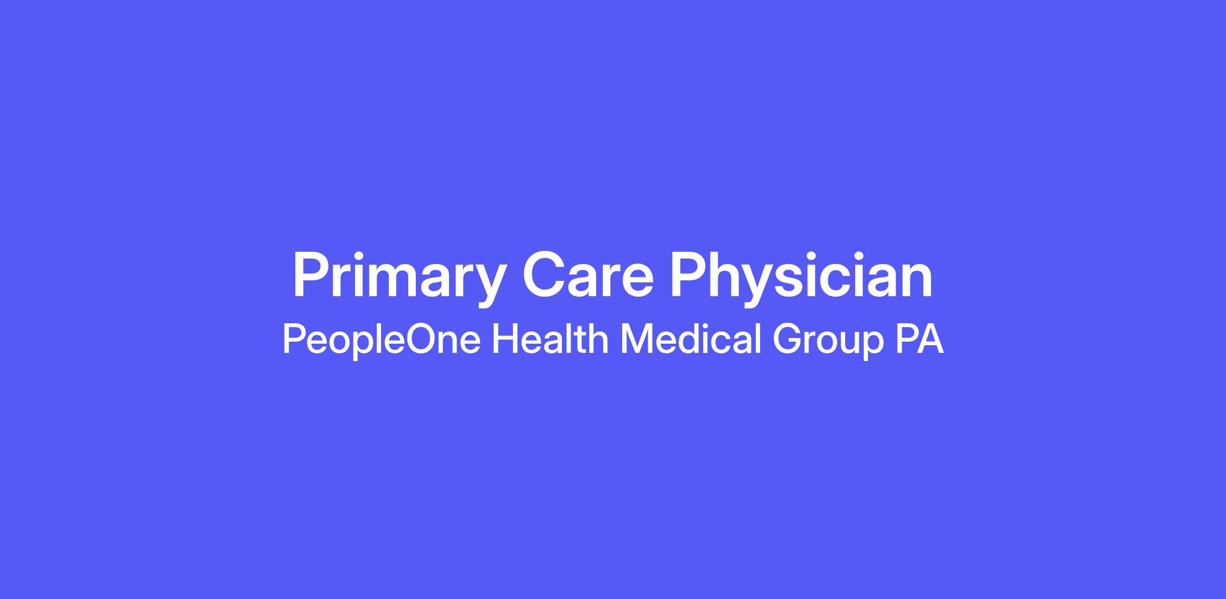 PeopleOne Health is seeking a board-certified Primary Care Physician with training in Family Medicine or Internal Medicine/Pediatrics to join our team. We are looking for a dynamic physician who is passionate about providing full-spectrum primary care—including care for both adults and children—and dedicated to building strong, long-term relationships with patients. The ideal candidate shares our commitment to helping individuals make informed health decisions by connecting them with resources that support healthier lifestyles and improved outcomes.