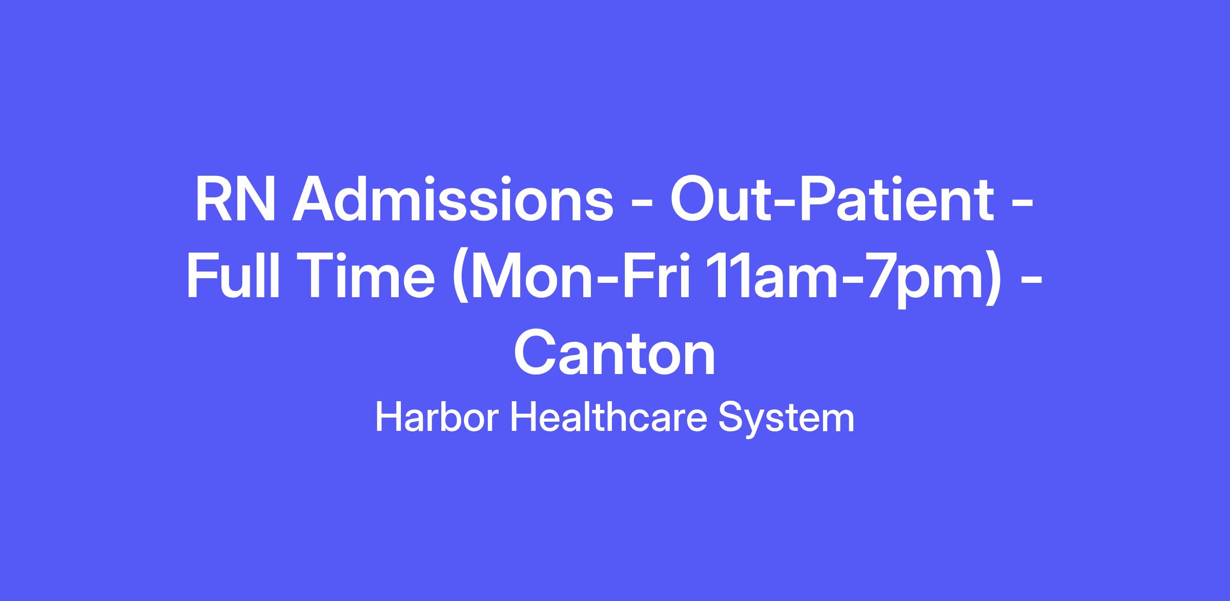We are currently seeking qualified candidates for a full time Out-Patient Registered Nurse (RN) Admissions position in the Canton area.