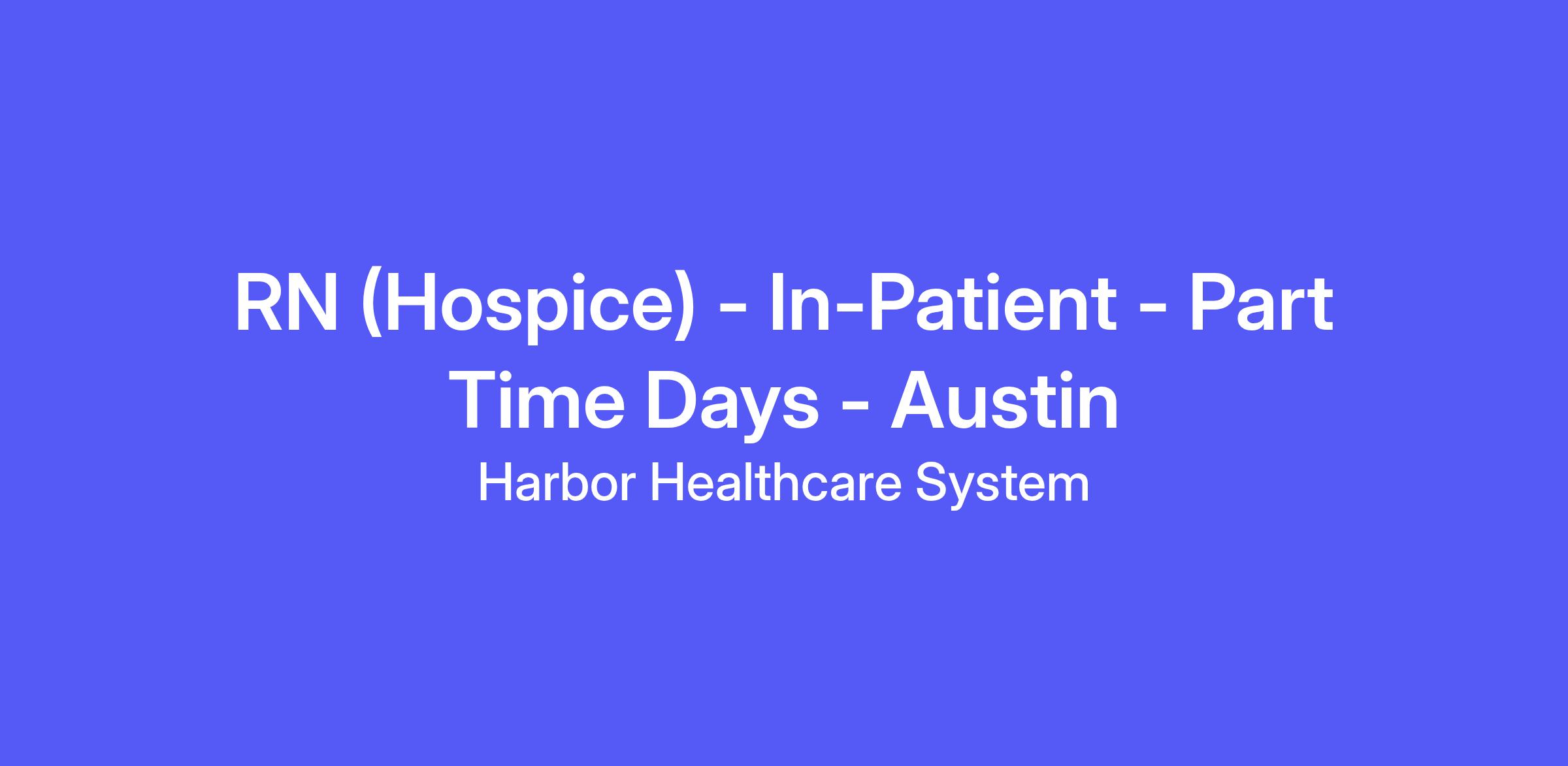 We are currently seeking qualified candidates for a part time In-Patient Registered Nurse (RN) position in the Austin area.