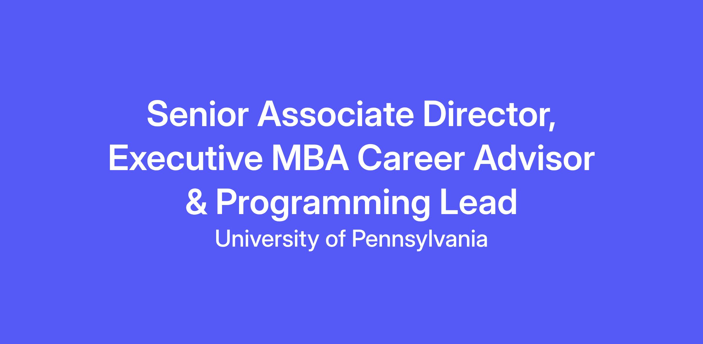 Senior Associate Director, Executive MBA Career Advisor & Programming LeadJob Profile Title